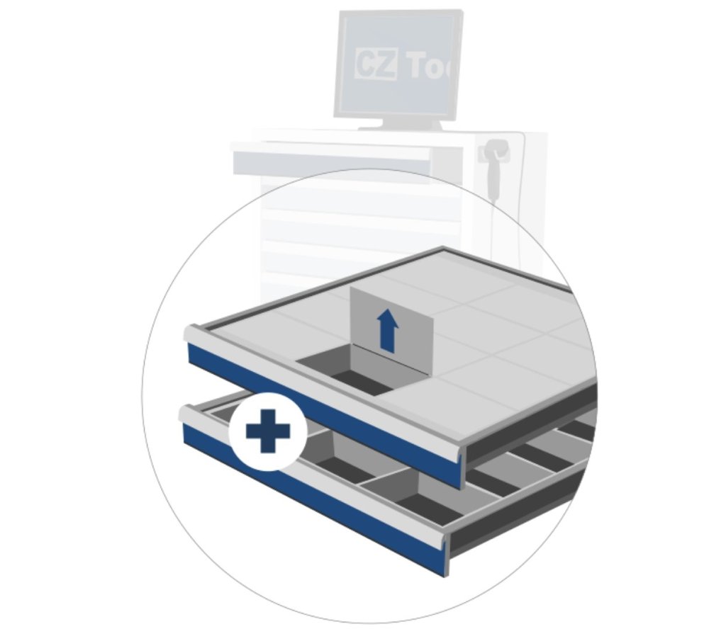 Toolbox PROFI is a variant for larger companies with a higher requirement for the security of tools in PROFI sockets and the simultaneous use of the benefits of the variability of STANDARD sockets. The advantages of the individual variants are combined into one unit so that the toolbox fulfills its purpose with the best price-performance ratio. Thanks to the simple setting of permissions, different groups of workers (e.g. service, millers or maintenance) can comfortably use the toolbox with different access options to items. Everything is fully configurable from the Kliet application environment, developed for dispensing system management.