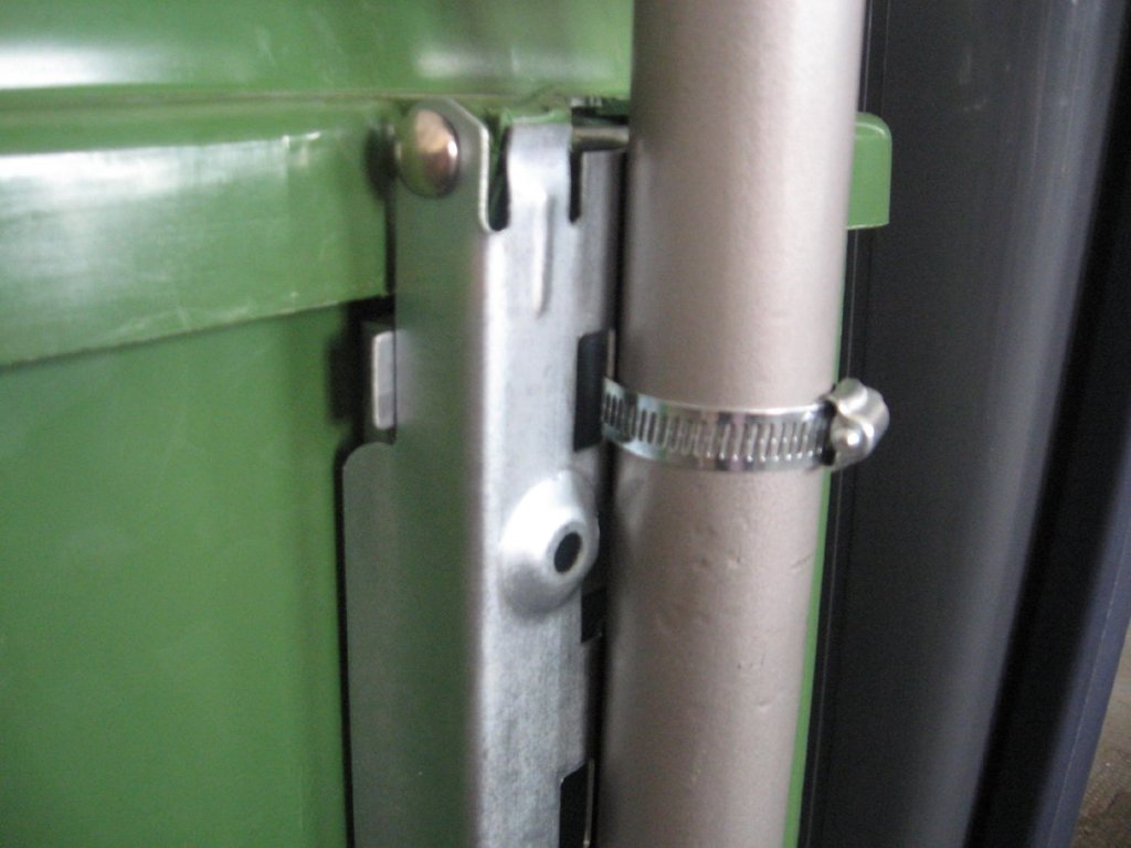 Hanging trash can with a holder that can be attached to any post using a metal tape. Surface treatment - komaxit RAL 6029. Volume - 15 l, height 390 mm, diameter 250 mm. Warranty: 2 years. The price includes a holder for attaching to the pole, the tape is not included.