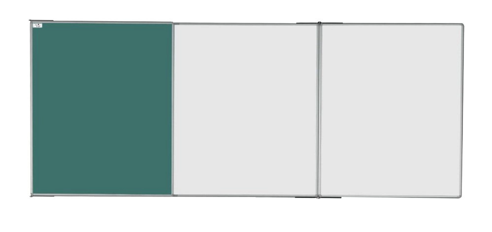 Three-part magnetic board with two-layer ceramic surface of the highest quality. Open board green ceramic for writing with chalk, closed board white ceramic for writing with marker. Anodized aluminum frame in a natural shade, plastic corners. Dimensions h. 100 x w. 200 cm. Options for fixing to the wall, to the Lifting Stand AL or Pylon AL can be found below, in the section YOU CAN ADDITIONALLY BUY together with other products.