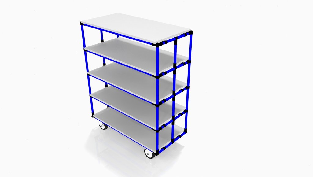 - dimensions, number of floors, or material of shelves and trolley can be adjusted as desired