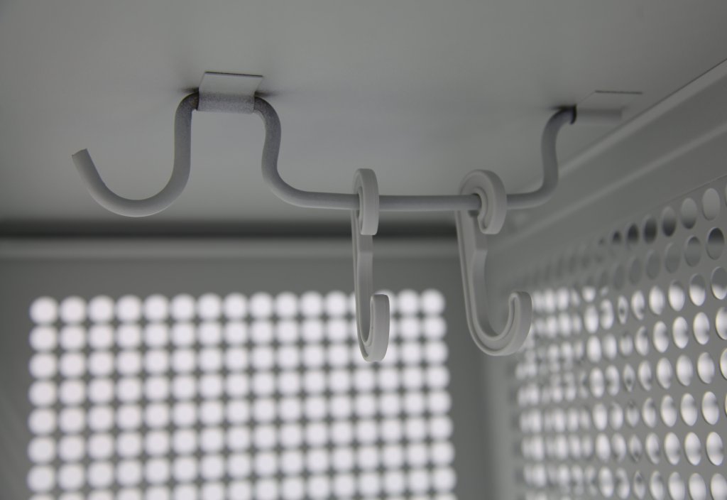 Box-perforated wardrobe, color RAL 7035 light grey.