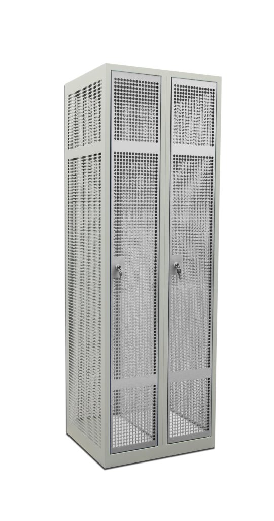 Two-compartment perforated wardrobe, color RAL 7035 light grey.