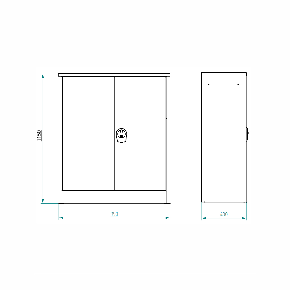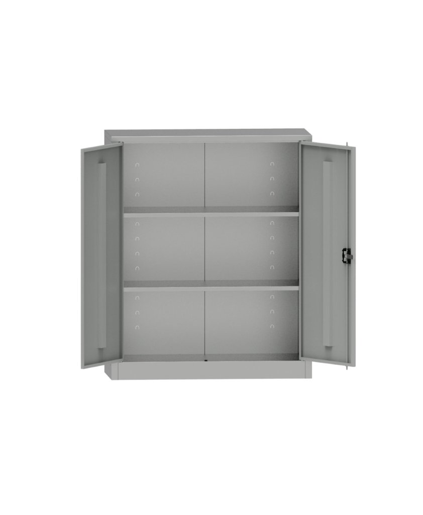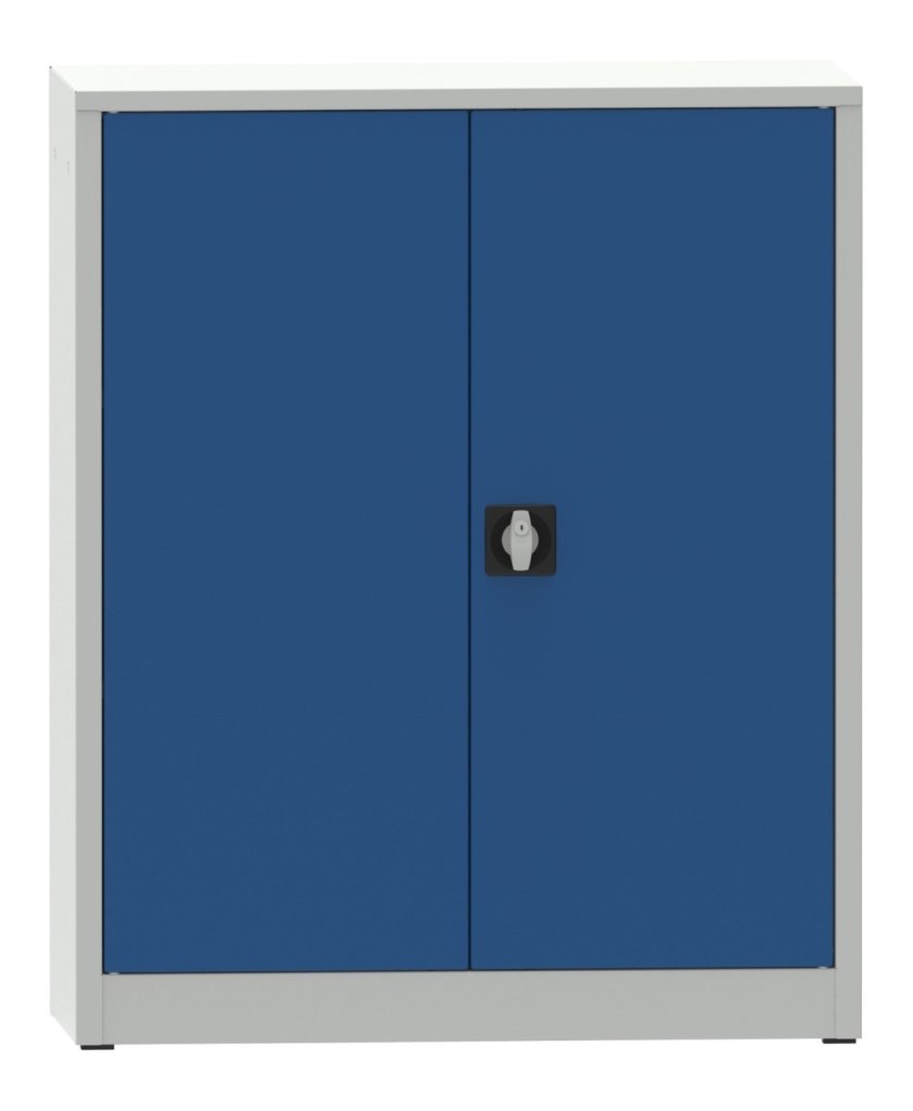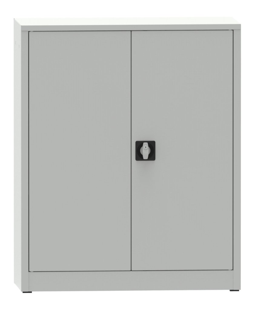 Two-door filing cabinet. Height 1950 x width 950 x depth 400 mm, 4 shelves. Wheelbase lock. Body color RAL 7035 light gray. It is delivered disassembled - easy assembly.