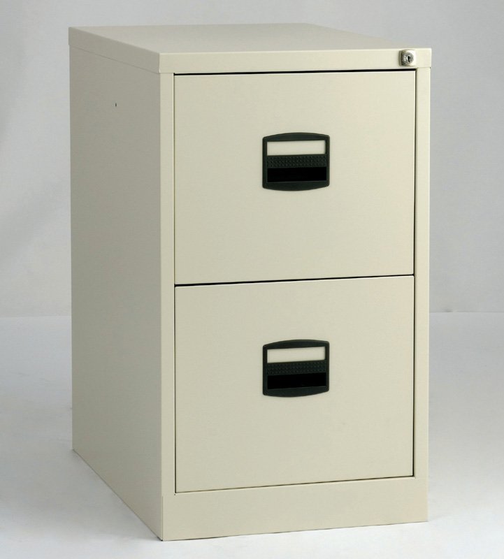 Two-drawer metal filing cabinets for documents or hanging files in A4 or Foolscap format, width 413 or 470, height 711, depth 622