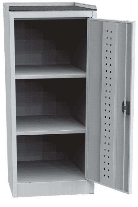 One-door metal cabinet with two shelves. Dimensions height 1180 x width 505 x depth 500 mm. Locking with a cylindrical wheelbase full description and parameters
