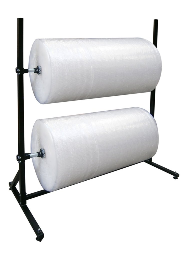 Unrolling stand double for rolled packaging materials. Dimensions height 1500 x width 805 x length 2000 mm. The color of the structure is black.