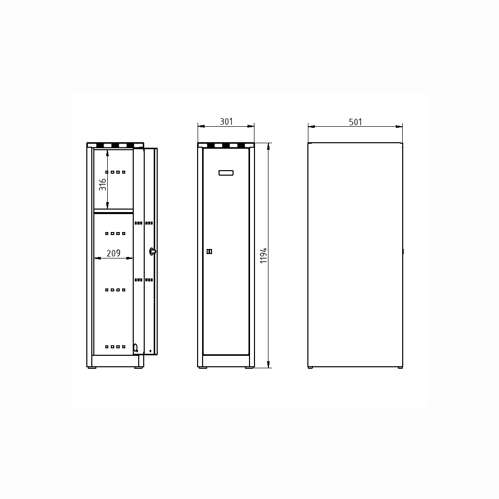 Wardrobe welded with double-skin doors for greater security, height 1200 x width 300 x depth 500 mm. Locking with cylinder lock or full description and parameters