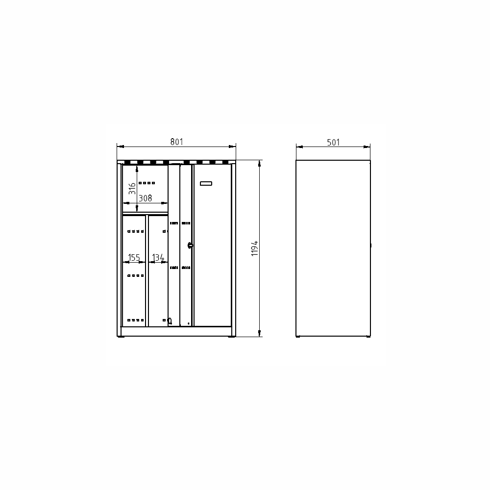 Double door wardrobe welded with double skin doors for greater security, height 1200 x width 800 x depth 500 mm. Locking with a full description and parameters