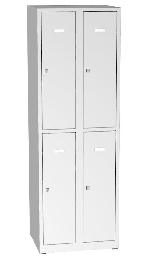 Metal cabinet with lockable boxes, height 1800 x width 600 x depth 500 mm. Key locking or padlock closure. Body color RAL 7035 light gray.