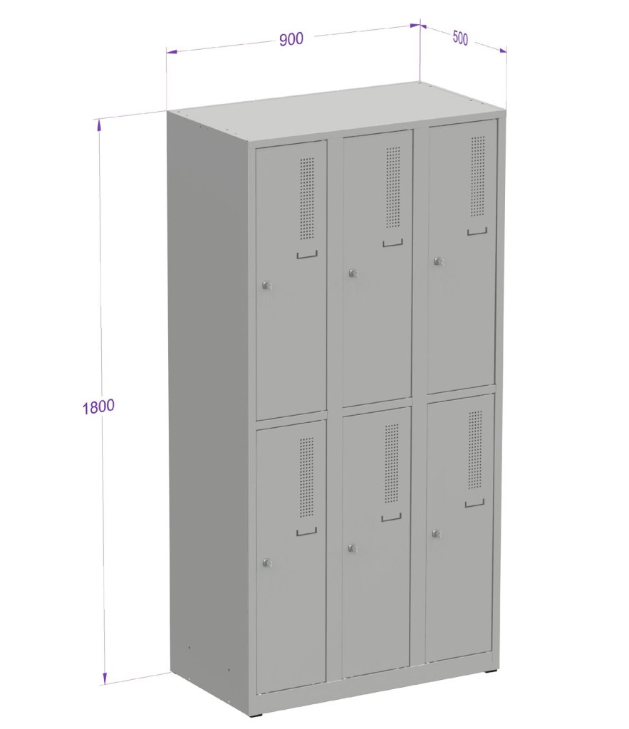 Metal wardrobe divided on plinth, height 1800 x width 900 x depth 500 mm. Key locking. Body color RAL 7035 light gray, door color full description and parameters