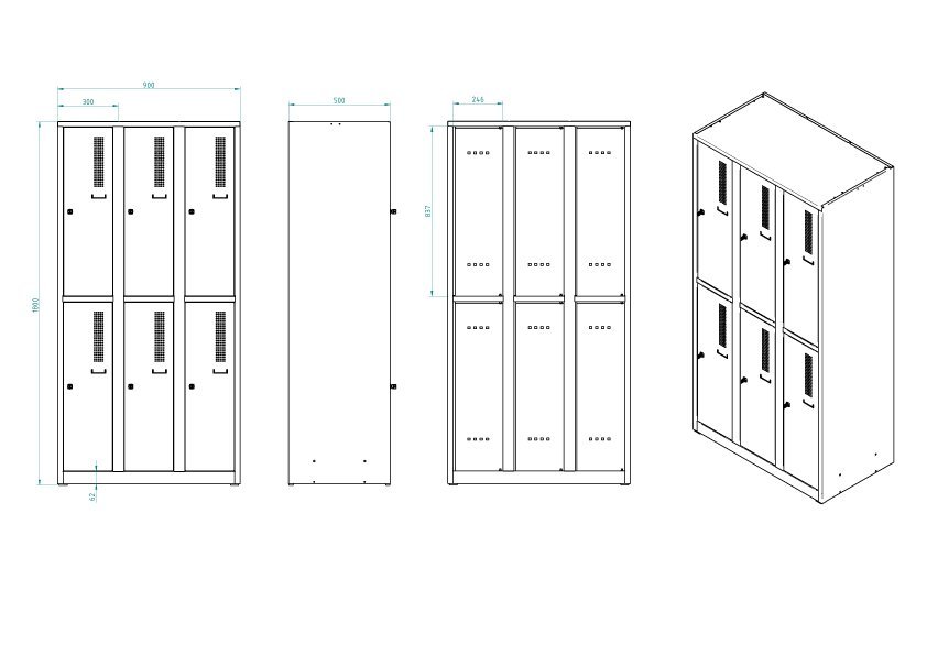 - 6x compartments, width of each compartment 300 mm