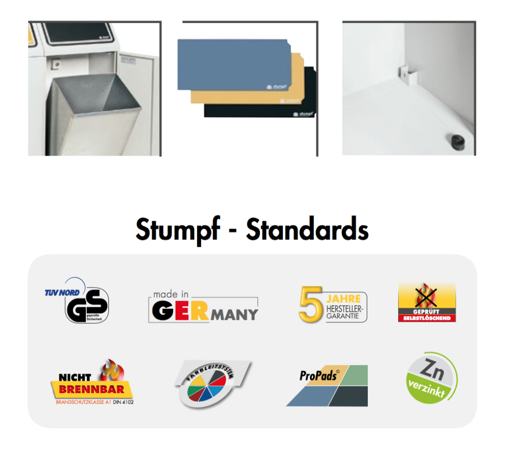 Metal waste bin with dimensions - height 1000 x width 1210 x depth 300 mm. The entire structure has a galvanized surface. The closure has robust protectors in 3 colors for distinction. The flaps are always open - waste can be thrown in without touching the bin. The basket has a lockable door in the front and removable inner baskets 3x 45 l. Two adjustable legs to compensate for uneven floors. Pictograms are not part of the delivery.