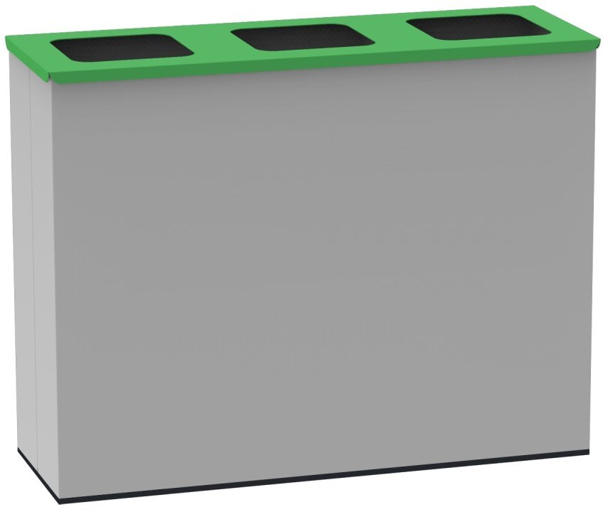 For waste separation. Height 460 x width 910 x depth 320 mm. Basket color light gray RAL 7035, different lid colors. For internal full description and parameters