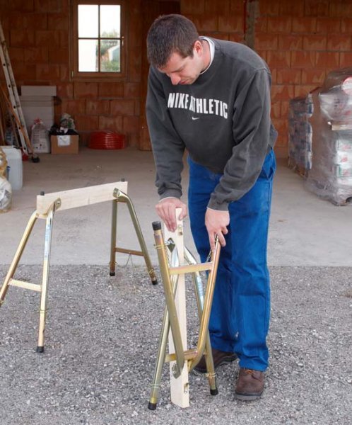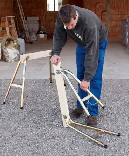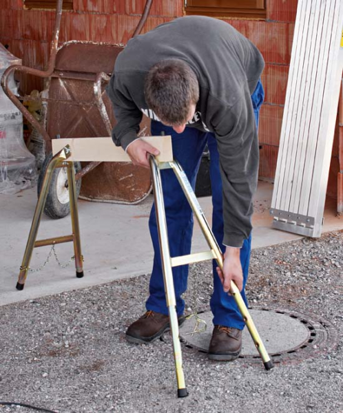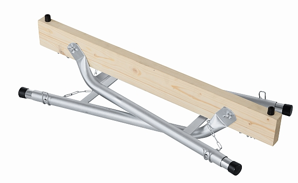 The base consists of galvanized steel tubes with a diameter of 28 mm. All 4 legs can be adjusted in height from 60 to 90 cm. 80 cm long base surface with anti-slip protection. Saves space by folding the legs. Anti-slip feet. Load capacity 150 kg.