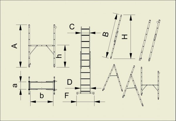 Working platform with Eurostyle step adjustment, number of partitions 2x7, dimensions of the platform 1040 x 340 mm, maximum height of the platform 1000 mm. Made according to ČSN-EN 131, load capacity 150 kg.