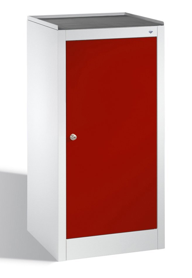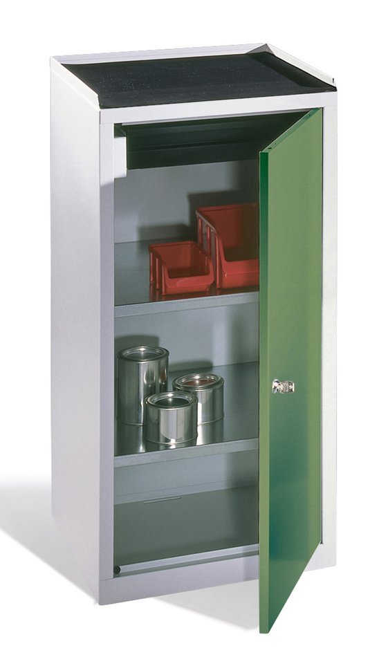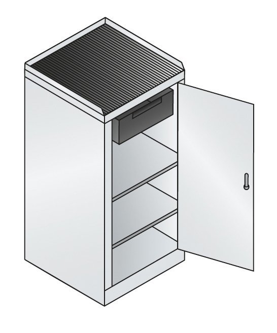 Workshop tool box width 450, height 1030, depth 400 mm. With rubber on the upper surface and an edge against spillage. Body color RAL 7035 light gray.