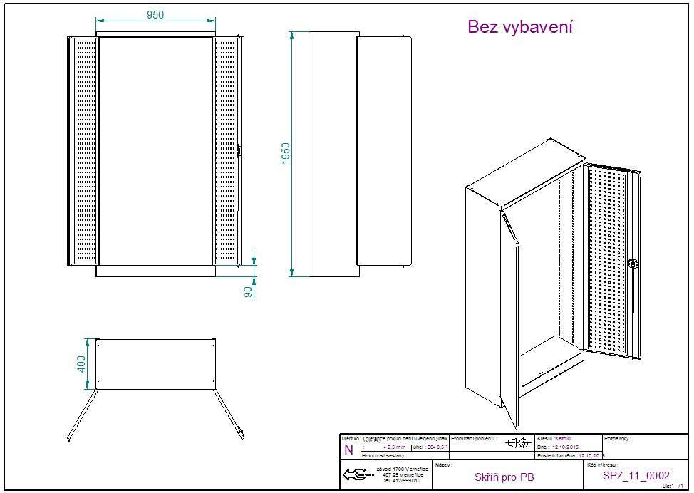 Workshop cabinet for plastic boxes without equipment. Height 1950 x width 950 x depth 400 mm.