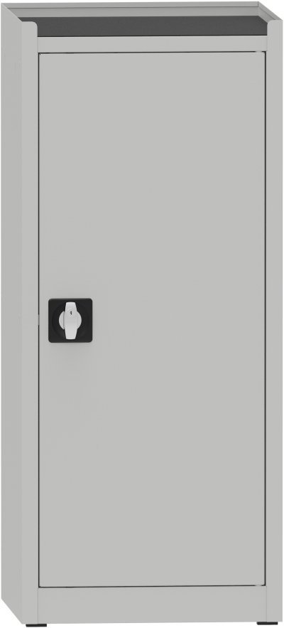 One-door workshop cabinet, width 505, height 1950, depth 600 mm, 2 shelves. Option to replace solid doors with a frame with tempered glass or a wire mesh for a better overview of the contents of the cabinet. Body capacity 800 kg, shelf capacity 100 kg. Body color RAL 7035 light gray.