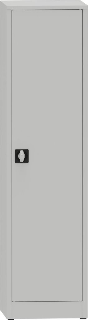 One-door workshop cabinet, width 505, height 1950, depth 600 mm, 2 shelves. Option to replace solid doors with a frame with tempered glass or a wire mesh for a better overview of the contents of the cabinet. Body capacity 800 kg, shelf capacity 100 kg. Body color RAL 7035 light gray.