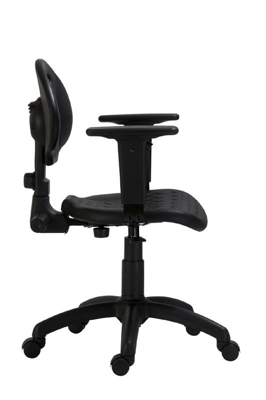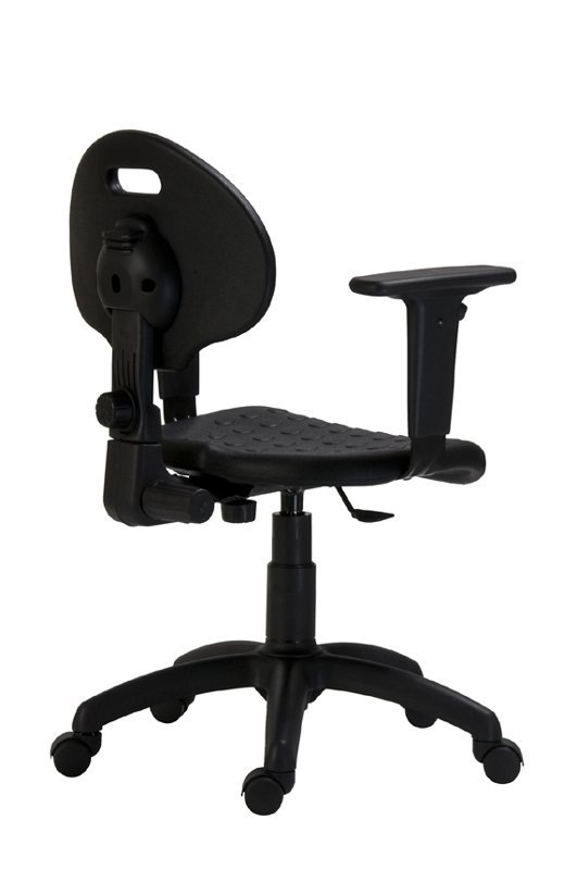Polyurethane workshop chair, adjustable backrest angle, adjustable backrest height and seat depth, gas piston. Wheels or gliders, full description and parameters