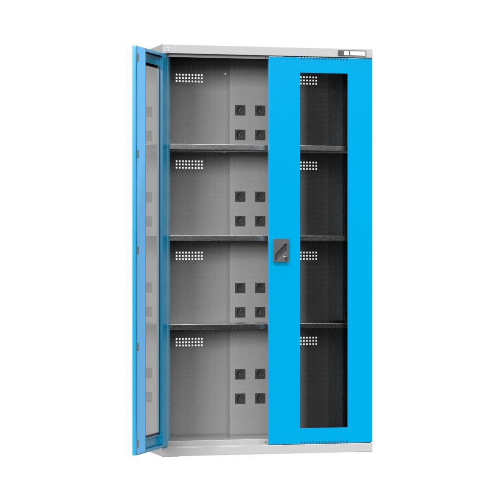 Workshop charging cabinet NSK2S cabinet with glass doors based on the SK2 cabinet design. The cabinet has a built-in center panel full description and parameters