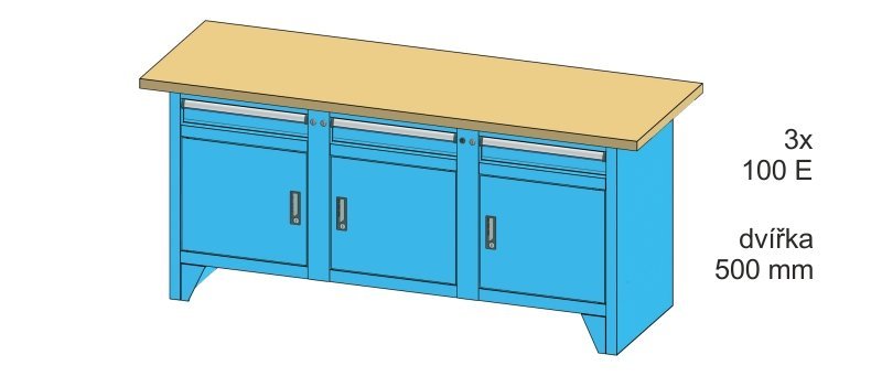 Workshop table, board size 1500 x 700 x 40 mm, body size 1198 x 600 x 840 mm. Worktop joint beech 40 mm thick or beech multiplex (designation M - layered beech veneer) - thickness 40 mm. Table load capacity 800 kg.