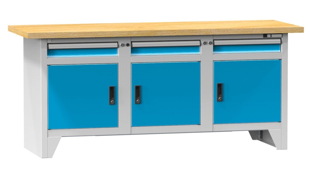 Workshop table, board size 2000 x 700 x 40 mm, body size 1796 x 600 x 840 mm. Worktop joint beech 40 mm thick or beech multiplex (designation M - layered beech veneer) - thickness 40 mm. Table load capacity 800 kg.