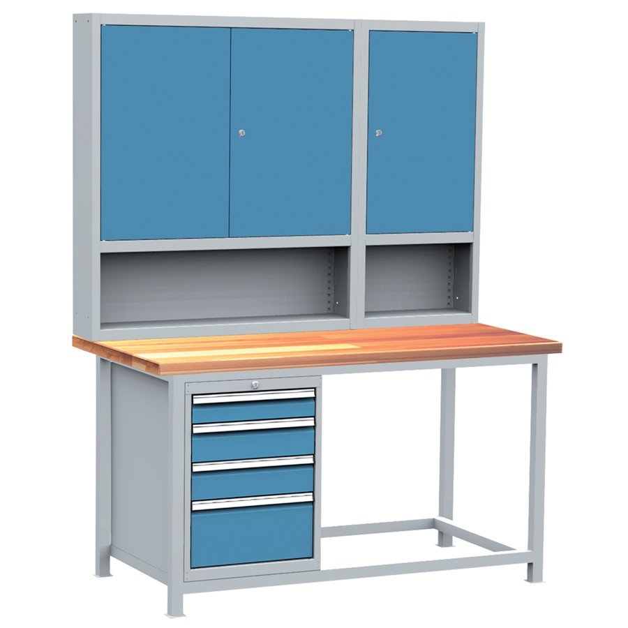 Workshop table with containers, assembly DPJ 106, width 1500, height 1950, depth 750 mm, worktop beech joint 40 mm. Body capacity full description and parameters