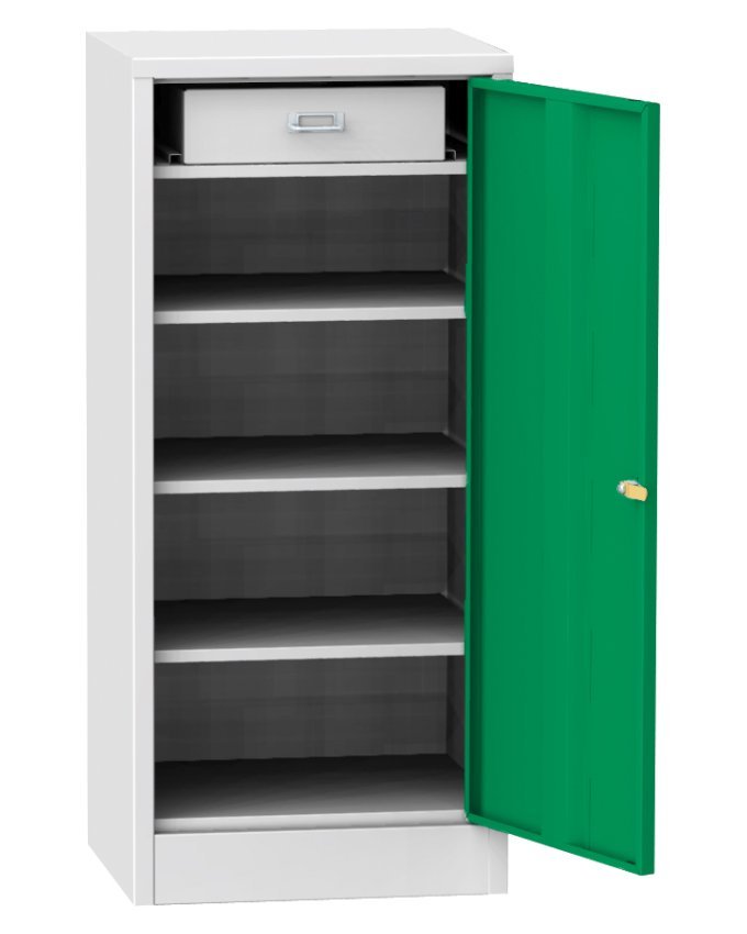 Workshop tool box width 450, height 1030, depth 400 mm. With rubber on the upper surface and an edge against spillage. Body color RAL 7035 light gray.