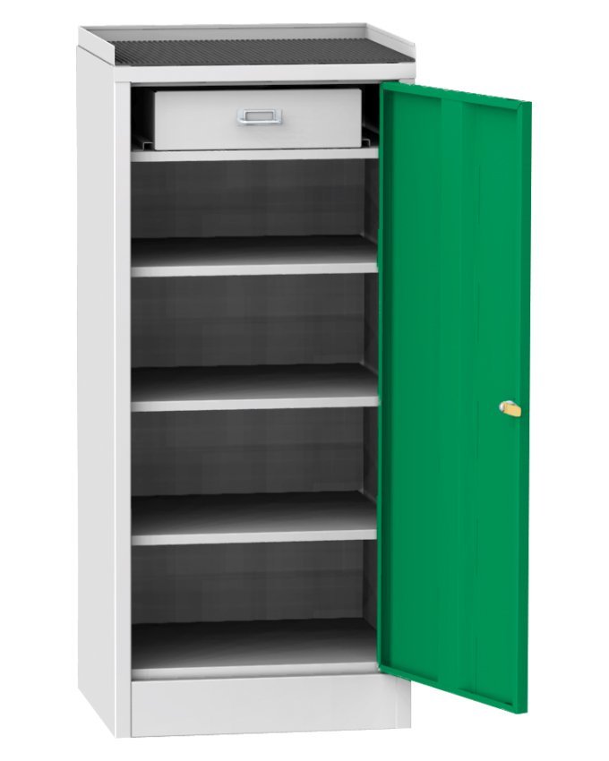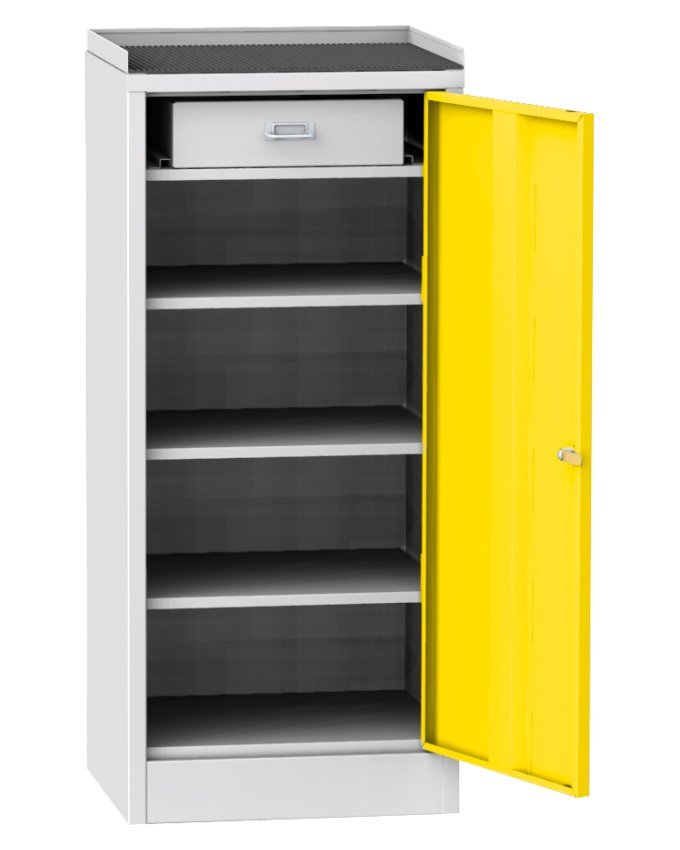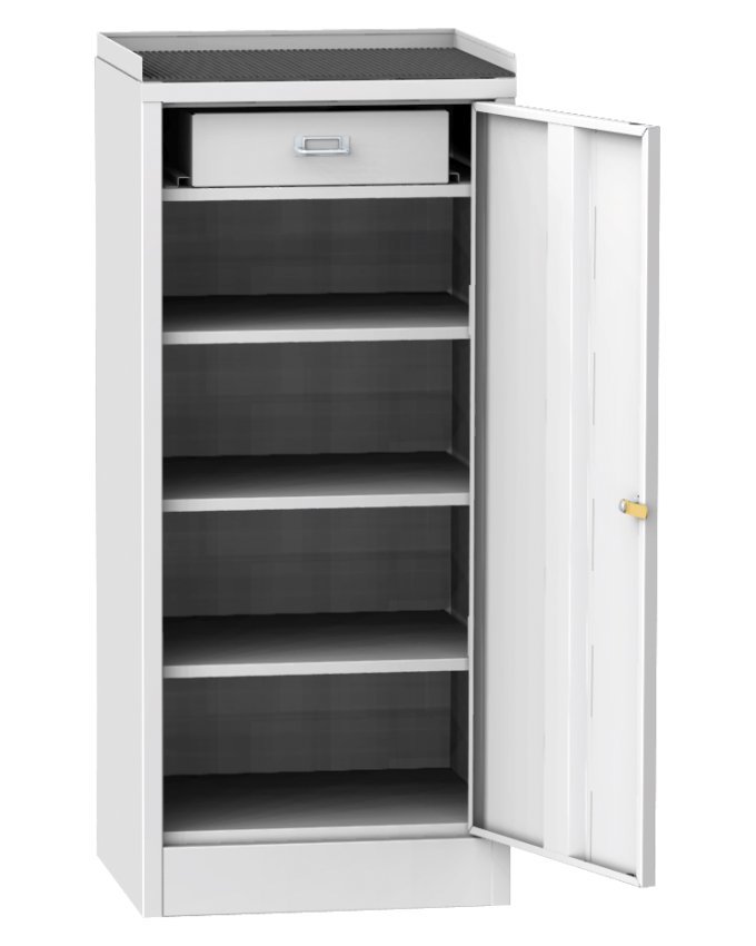 Workshop tool box width 450, height 1030, depth 400 mm. With rubber on the upper surface and an edge against spillage. Body color RAL 7035 light gray.