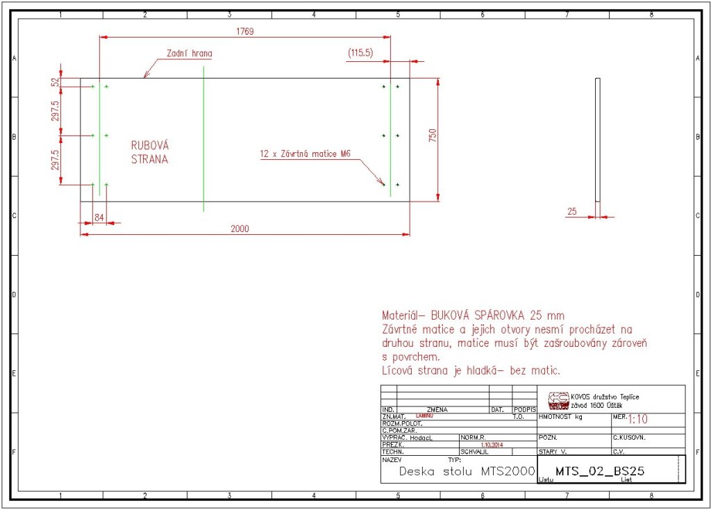 Worktop beech joint, width 2000 x depth 750 mm. Can be supplemented with different types of legs, containers, drawer cabinets and full description and parameters