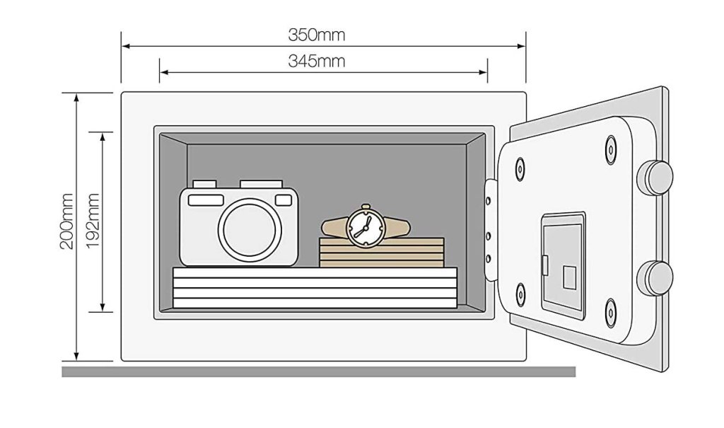 Yale High Security furniture safe with automatic door opening. Electronic code locking with the possibility of emergency opening using a key with a double profile. Height 200 x width 350 x depth 200 mm, weight 8.5 kg, volume 9.6 l.